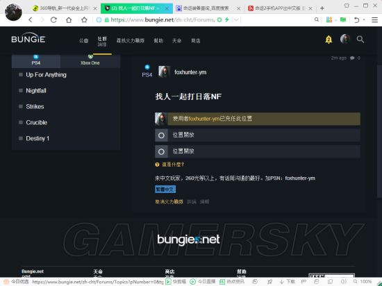 相信很多玩家都是利用APP来招募《命运2》的队友,接下来小编给大家带来的是《命运2》不用APP招募队友方法指南,这个方法是利用官网的哦,希望对各位玩家有用。