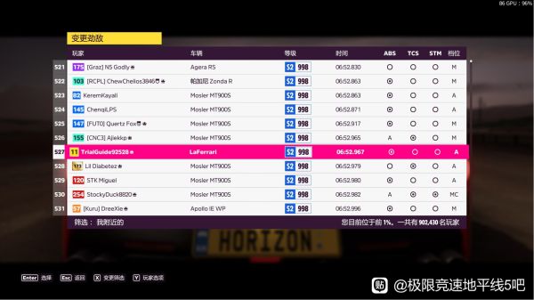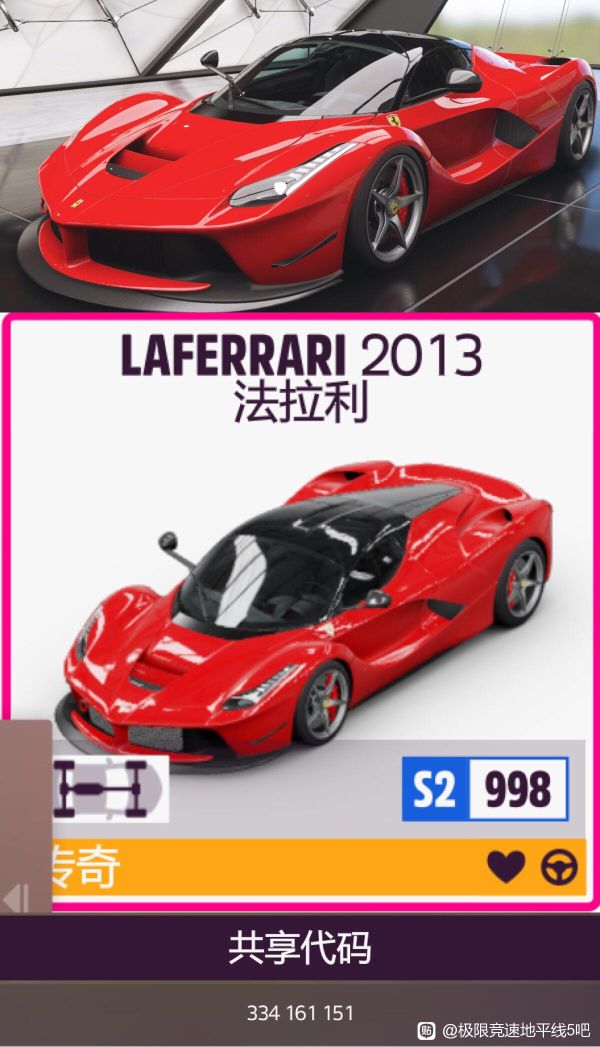 LaFerrari是法拉利出品的一款超级跑车,拥有超凡极致的性能。下面请看由“斩魂の绘梨衣”带来的《极限竞速地平线5》法拉利LaFerrari原厂调校分享,希望大家能够喜欢。