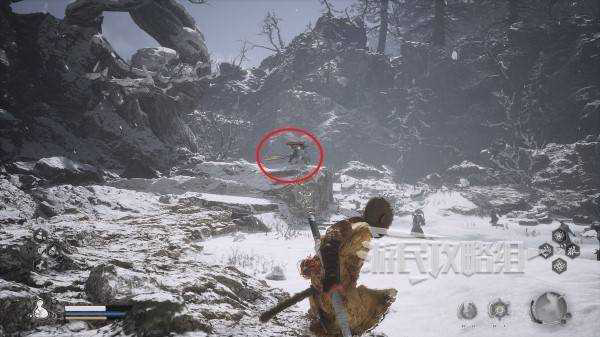 参考下图,沿路走到下图所示位置附近时,前方大石头上(红圈位置)会出现一只隼居士。
