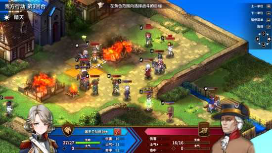 从这里我们可以看到,广场上有两个炮兵,而开门之后双将(wang)领(zi)和墙外的第三个炮兵都会冲过来,干死一个后敌军还有全体buff,想苟着围攻将领会被对面大炮狂轰烂炸。所以八回合看似是太少,实际上是太多没有正确的应对敌人的方式我们早在八回合结束前就会死人失败。所以,我们只能绝挣一线,用迪昂和欧斯卡砍掉炮兵后用几乎全部主力在一回合内同时击败两个将领。