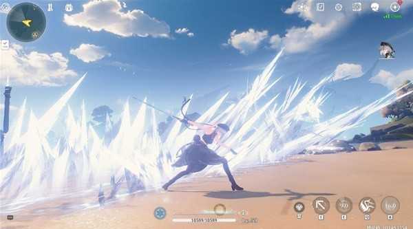 小技能和大招就没什么好说的了,主要是释放重击爆裂引爆冰冰,身上没有透视的时候判定条很短,有透视之后就很长,稍微按住普攻一会指针就达到蓝条释放区域了松开就可以释放重击爆裂了。