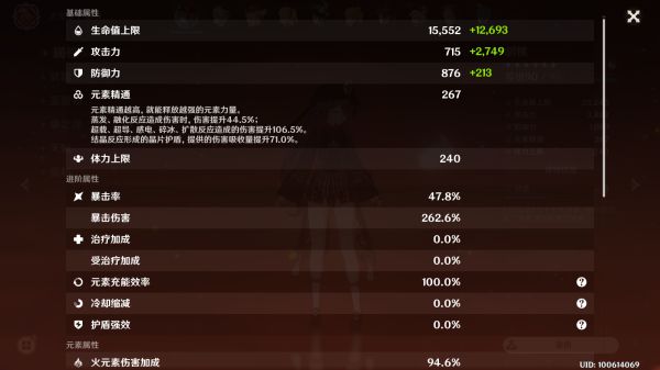 带精通沙漏:血量 28245,暴击 47.8% 爆伤 262.6%,半血开 e 后攻击 3463,精通 267。