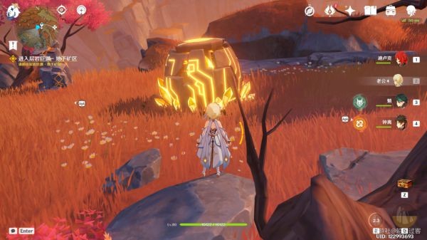 4.需先打碎左侧的岩种子用来启动下图中右侧的岩柱,最后启动岩柱。普通的宝箱。