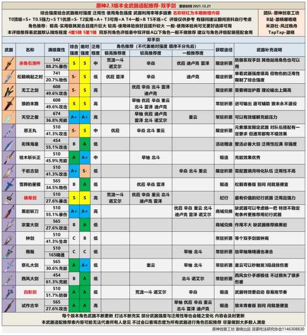 《原神》2.3版下半期也已经更新,并且增加了几把新的武器。此次就为大家带来由“风过晚舟”分享的《原神》2.3版全武器强度评级,一起来看看吧。