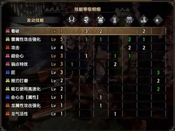 攻击317 会心50 弱点会心100 属性0 防御551 触发龙气死逃伤害稳定540(无怨恨,出怨恨会在574)