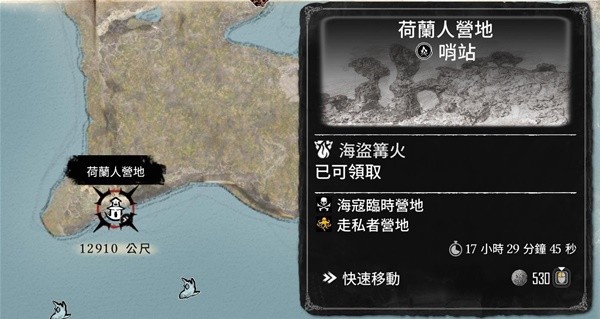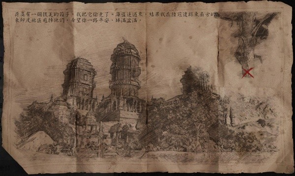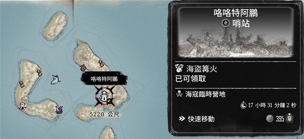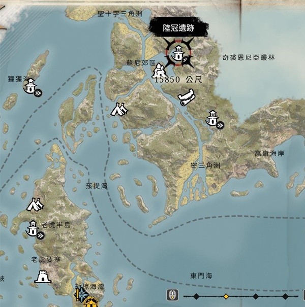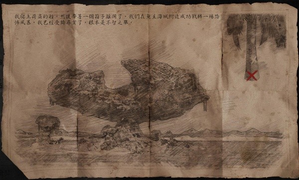 与藏宝图如出一辙,再来要判断哪里可以停靠,图中范围只有废弃灯塔(哨站)可以停靠,另外是堡垒、锻钢厂以及守卫塔都可以排除,如此便找出此藏宝图的目标地点。