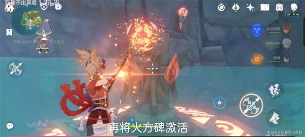 进入以后往下走看,可以看见一个火方碑和四个火炬,点燃四个火炬