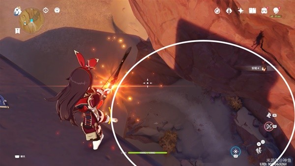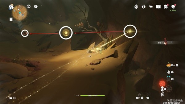 用元素视野扫一下副本,发现周围有个被锁的机关,俩火把,安柏射箭点亮。