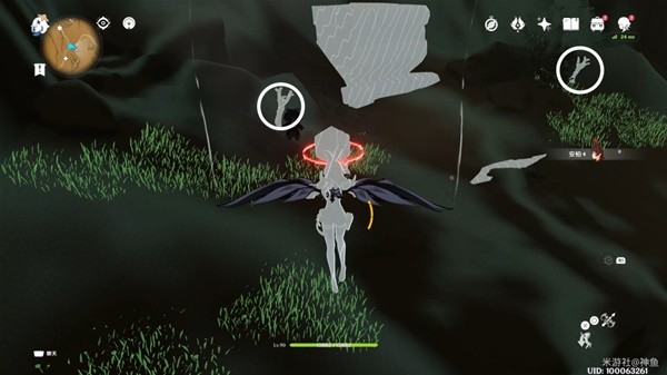 首先从愚妄行宫右上方的锚点出发,飞到上图六角星标记处,也就是巨人左手的食指上。
