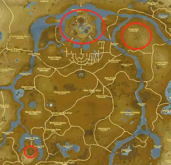 1. 中上红圈-城堡:综合武器库,海拉尔盾获得(地牢最里面的一个大房间)