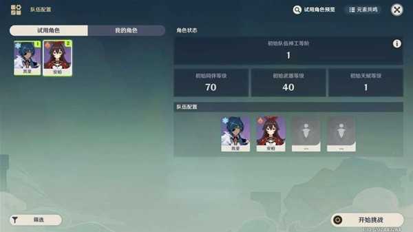 试用角色配队