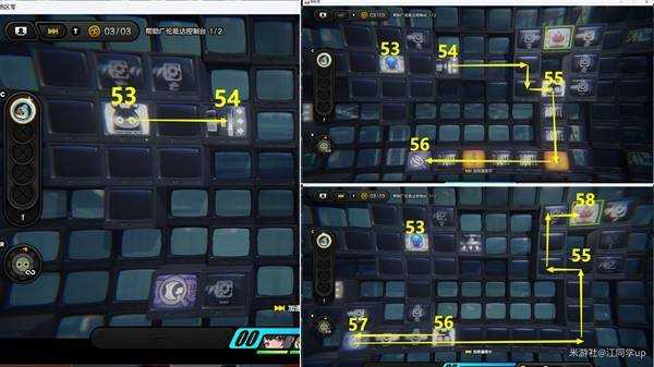 (7)接着先去53区域,接着在54区域放一个炸弹,然后在下面来回走动引爆54区域炸弹,接着去55和56区域,接着拿了57区域银币后再返回53区域