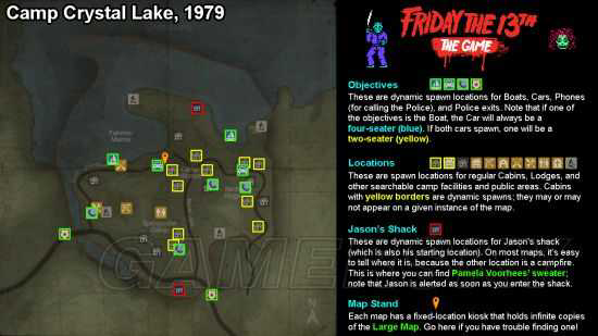 下面为大家分享《十三号星期五》附有所有可能刷新电话、船、车等道具位置标记的完整地图。希望我标全了所有的电话位置(每张地图上大概有四个位置),希望将来有机会可以把汤米和霰弹枪的位置再次补全。