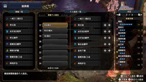 第二套是70会心利刃3,所用护石纳刀2植生学1s321,登龙同上。