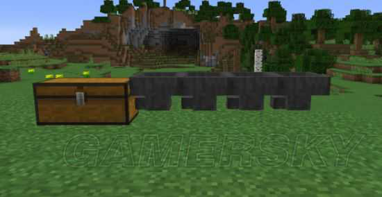 放上箱子,完工,这个是非常实用的自动熔炉,效果也比较好,不过可能略微有点复杂。