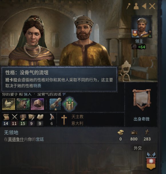 这个游戏主教的学识很重要。这块我想基本就不用说了。这里分享一个小冷门知识点,一般你的主教在12点学识基本就够了。然后你可以把他聘请为宫廷医生。也就是说宫廷医生的那个医生属性提上去了。还能给其加3点的知识。