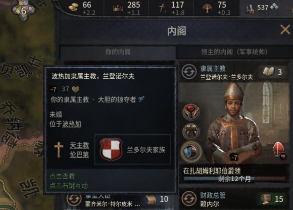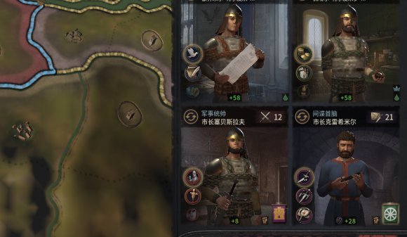 这个游戏主教和间谍首脑非常重要,其次再是军事统帅与财政总管。最后才是掌玺大臣哦。一般不想开仗前军事