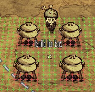 然后在中心点放置冰箱(一定要先造锅再造冰箱!!)