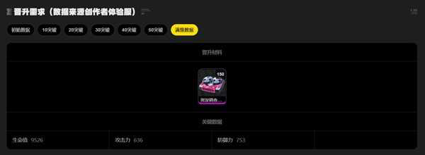 专属音擎1-50级突破材料:丁尼×20万、音擎能源模块×100、防护组件×4、增强型防护组件×32、特化型防护组件×10