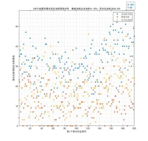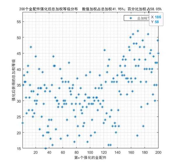 总加权等级好像比之前的基础数值还要没有规律(正态分布?),总加权等级下限为15,上限为58(枪口)或47(其它三个部位);