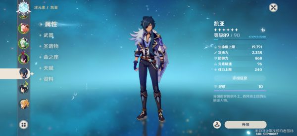 伤害水平:满命对于我这种氪不起高命五星(泛指4命以上)的人还是颇为不俗的,不过普池364抽五星都出了6个了还只出了5个凯亚和1个丽莎,所以凯亚概率,很低,投资需谨慎,建议氪得起648但氪不起6480的可以三命开始玩,三命起码很快就可以看见满命的曙光了,二命吧,感觉离满命还是有点远,和其他的有些满命五星比可能没那么厉害虽然已经很厉害了。