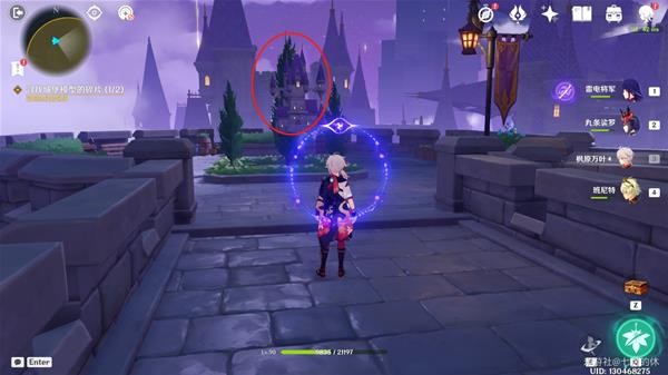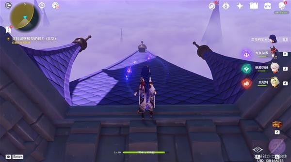 20.拿到碎片,利用风场,回到,拼城堡,如图所示。就会出现风场。