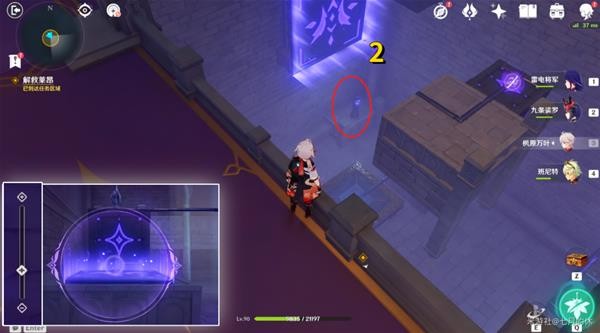 12.拿完返回来,把两个鸦眼机关都调一下,如图所示,会出现风场,利用风场往左边飞过去