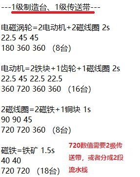 以1铁块=1齿轮 1s 为例,1倍速度下为60/分钟,1级制造台需要*0.75=45/分钟,3级制造台需要*1.5=90/分钟