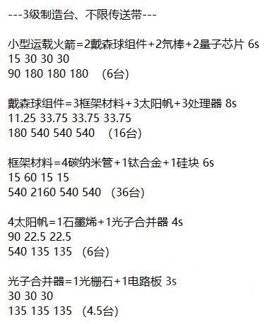只有制造台的制造速度不一样,其余制造设备一律都是1倍,制造台123的制造倍率分别为0.75、1.0、1.5