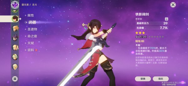 接下来说4流星套(由于刷了280体力没凑齐一套流星,用银影阔剑代替了)