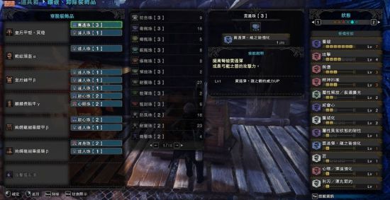 遗憾的是,这套配装在尸套γ到来之后会立刻产生变化,时效性较差。丝瓜的弱点位置不太暴露,灭龙弹又是贯通判定,所以配装采取提升站街会心为主。之所以图中没配完是因为主要技能已经全部点到了,剩余孔位与护石可以很随意。通常来说可以出看破4,保证站街会心70弱点会心100,剩余1+3孔,笔者插的耐属和耐冲(保证联机时能及时插上起爆龙弹和放陷阱捕获),solo的时候耐冲可以换缩短珠。除此之外,灭龙弹伤害正比于面板,因此佩戴无伤护石也是极好的。这里使用了两件麒麟防具都特意出了属耐,丝瓜的口气对于属性武器是毁灭性的,虽然打消果实即可解决但难免浪费输出机会,不妨插一颗耐属珠完成耐属3,免疫龙属性的异常才能愉快狩猎。即使不拘泥于属耐这个技能,麒麟γ的技能和孔位也是十分优秀了。