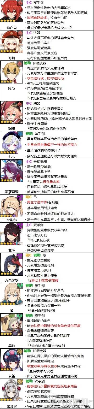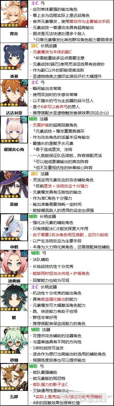 主C顾名思义就是在队伍中担任主力输出的角色,同时基本上也是队伍中操作时间最长的角色,所以那些仅使用普通攻击和重击就能造成可观伤害的角色排名靠前。