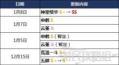 - S:宵宫、达达利亚、优菈、荒泷一斗