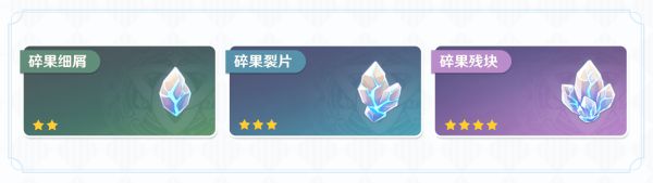 旅行者们一共可以从「调查点」中回收以下三种「地脉之果碎片」: