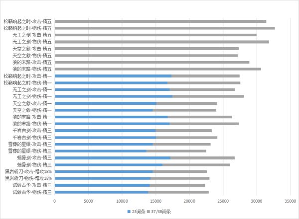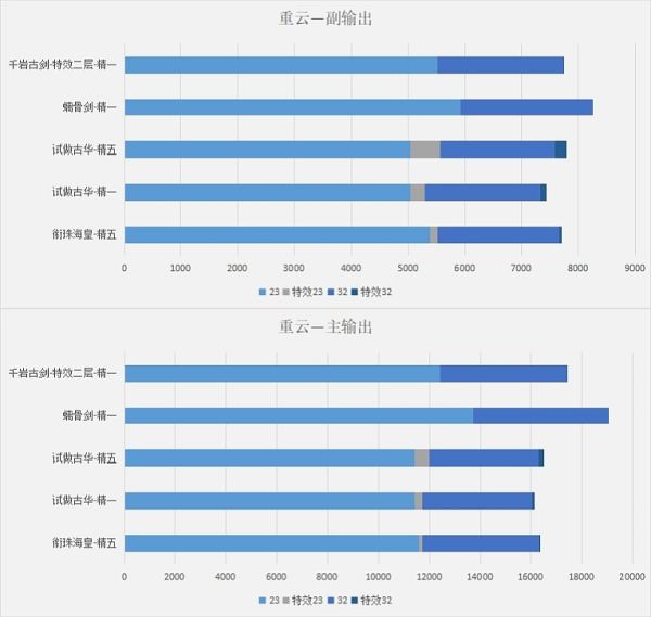 —副输出时衔珠海皇对比精一试做古华,输出高约3%—4%,精五试做古华则会高出约0.9—1%输出;