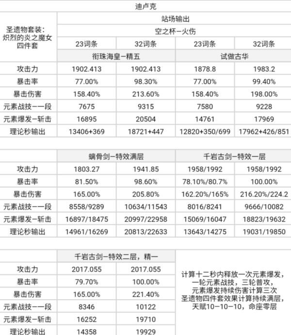 —计算中提供的角色输出方式可能不是效率最高的方式,部分角色的技能触发情况也偏理论,与实际情况可能存在差异。