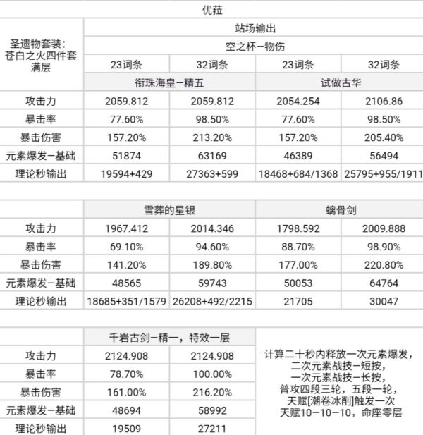 —理论秒输出包括暴击率影响,伤害参考为暴击后伤害;