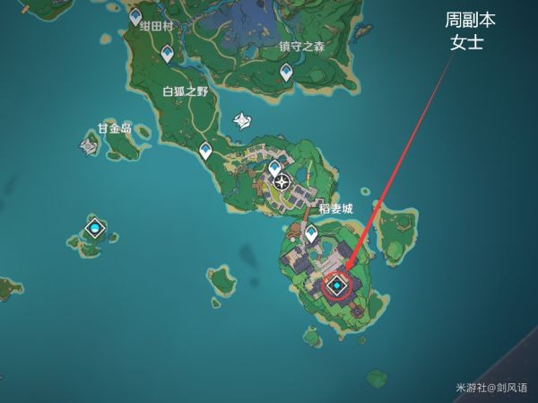 5.【熔毁之刻】位于稻妻城,如以下图片所示,打周副本BOSS(女士)掉落,一周一次。