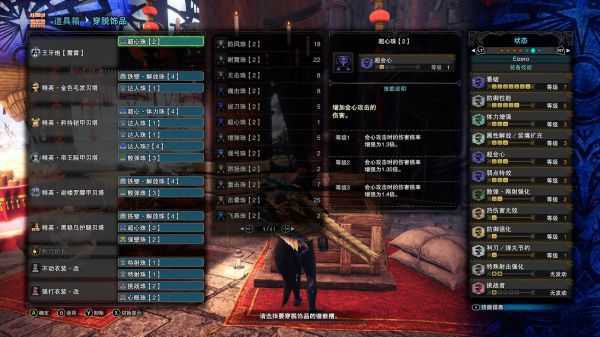 所有配装以基础输出技能(看破弱特超心)全齐为基础,克制默认吸血会心,个人偏向尽量堆会心(同样打20刀,宫廷别提有多舒适了,金狮就比较残念),所以不用提醒我什么金火会心高,可以下看破。
