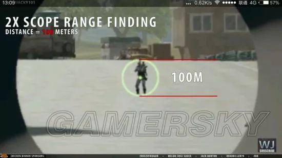 方法3:通过瞄准镜刻度判断,此处以二倍镜为例,二倍镜下,一百米距离的敌人,刚好占满了整个框。