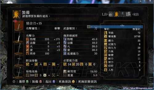 本来想耍帅用的居合刀,没想到流血属性超好用。改到+15,攻击力很强悍。