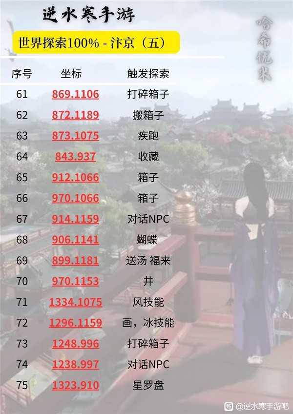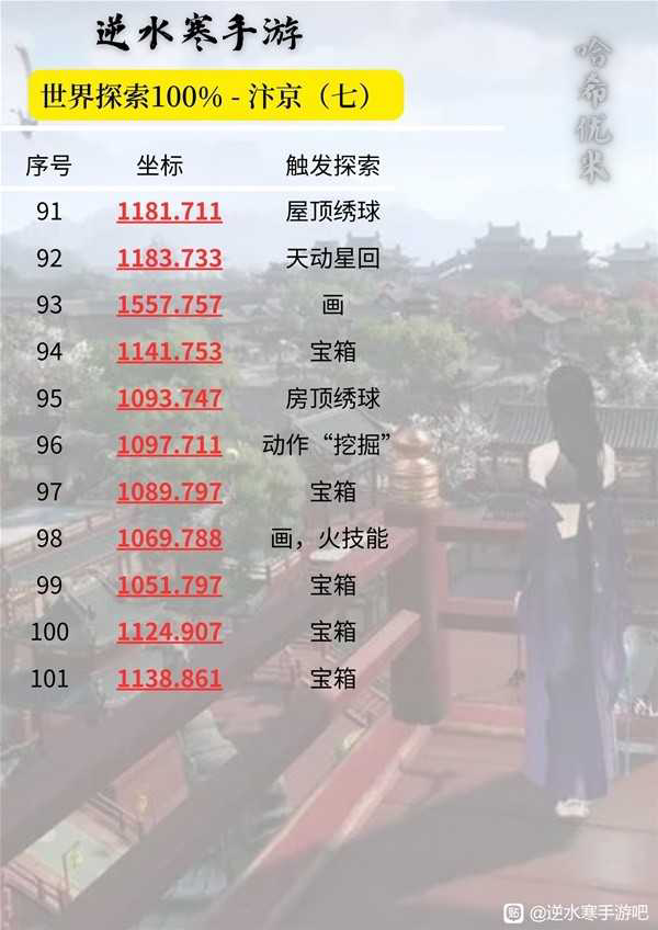 《逆水寒手游》汴京中有着很多收集要素,那么该怎么快速达成百分百探索呢?下面请看玩家“竹风夏意CN”带来的《逆水寒手游》汴京100&探索速成攻略,希望能帮助到大家。