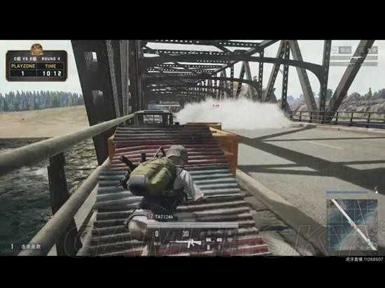 玩家想要过桥就一定要选择一个突击的时机。图中1246战队的一名队员选择敌人规避攻击的时间点快速突进到敌人面前,一番精准射击击倒了4AM战队的堵桥选手,为团队打造了一个全新的突破口。