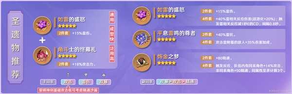 2如雷2角斗泛用性最强;4如雷效果非常适配激化流刻晴;4平雷单次伤害期望最高;圣遗物套装就从这3套中选择。