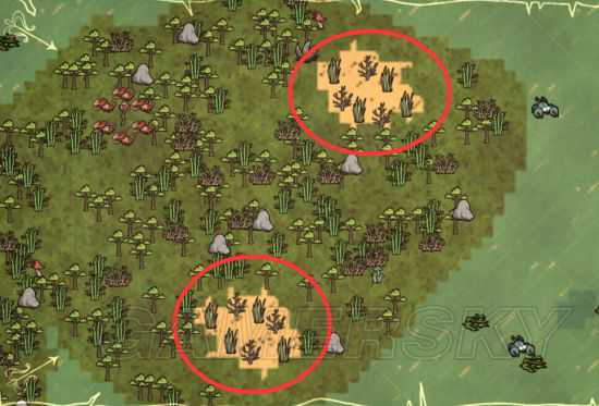 附一张野生渡渡鸟栖息地,地图随机生成后,两只渡渡鸟会分别在这种一小片沙地,有4丛草3个小树枝的地方出现,因为是随机生成地图,有时在一起,而大多数时候会是分开两个不同岛屿。(萌新请无视左上角的那根法杖。。或者你希望带回家也可以。。)