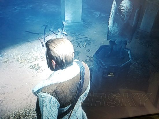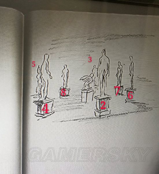 进去后会看到八个石雕、去中间的小石雕按△查看。