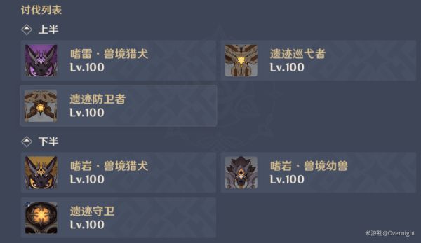 12-1的上下半场为兽境猎犬和兽境幼兽,分两波出现,出现的站位集中,无需拉怪,用同属性的角色能对它们造成更高的伤害(如雷系角色对应嗜雷兽境猎犬)。