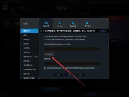 然后打开游侠对战平台,找到游戏进专房——点设置——手动选择——找到刚才的游戏启动程序载入即可。