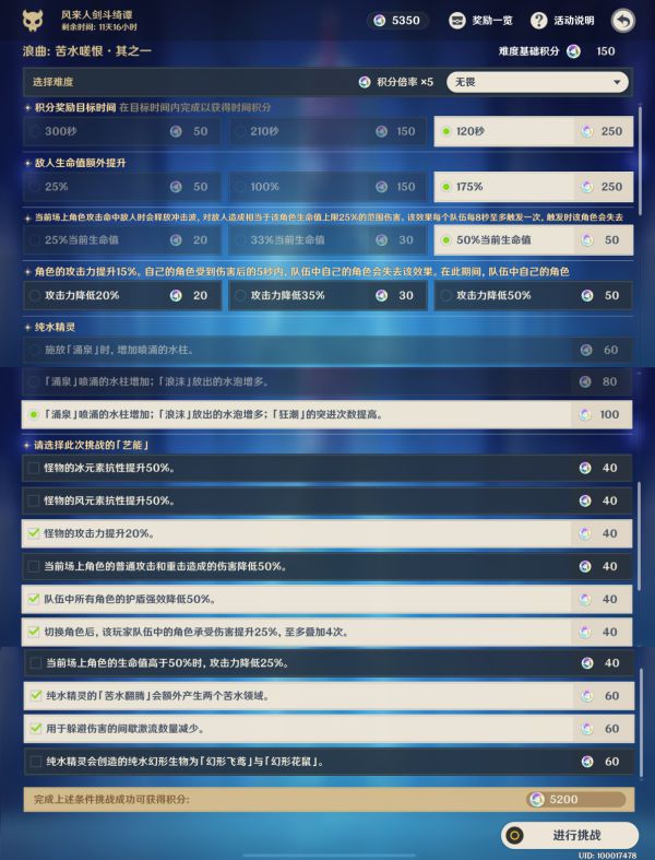 以下为我个人对于获取活动名片奖励需求下理解的「异能」选择(另外选择不克制自身输出属性的敌人抗性),具体可以根据个人实际挑战情况来选择难度和「异能」。