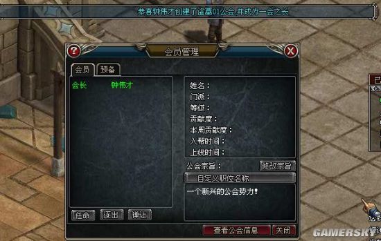 在填写完公会名称和公会宗旨后,花费25金钱,就可以创建公会。
